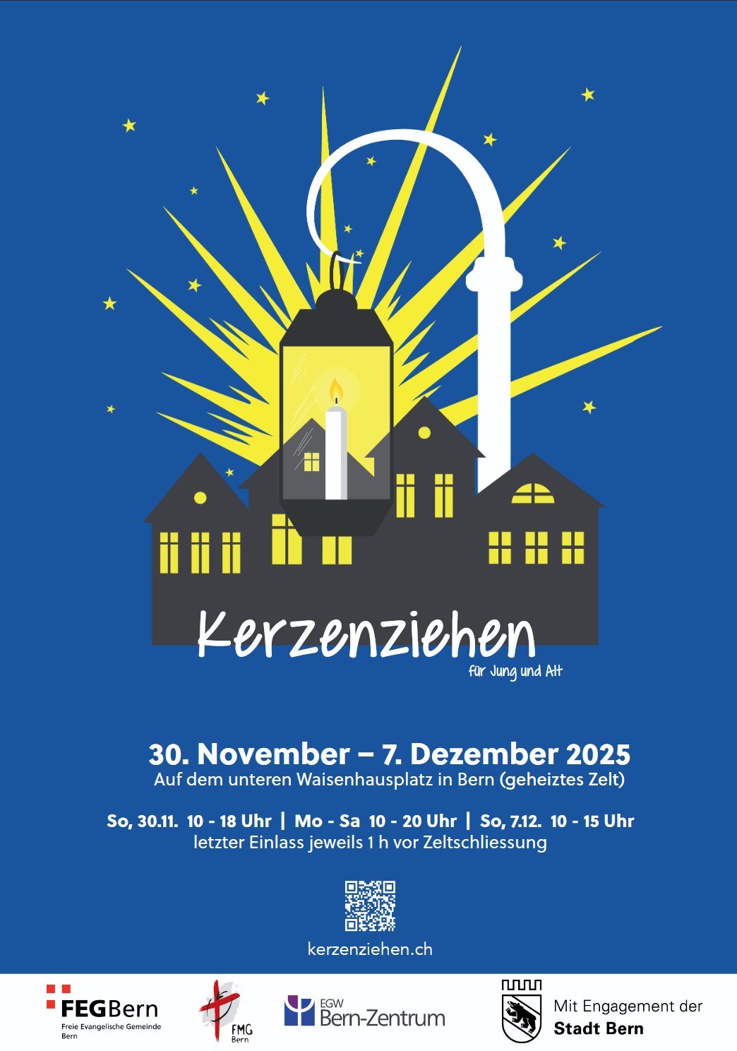 Hinter dem Verein „Kerzenziehen für Jung und Alt, Bern“ mit Gründungsjahr 2002, steht ein kleines Team von motivierten Menschen aus verschiedenen freien evangelischen Gemeinden rund um und in Bern. Der Verein sieht seine Hauptaufgabe in der jährlichen Organisation und Durchführung des Kerzenziehens auf dem Waisenhausplatz in Bern. Diese Veranstaltung wurde im Jahr 1991 zum ersten Mal durchgeführt und stand bis zur Vereinsgründung unter dem Patronat der BESJ-Jungscharen der Region Bern.